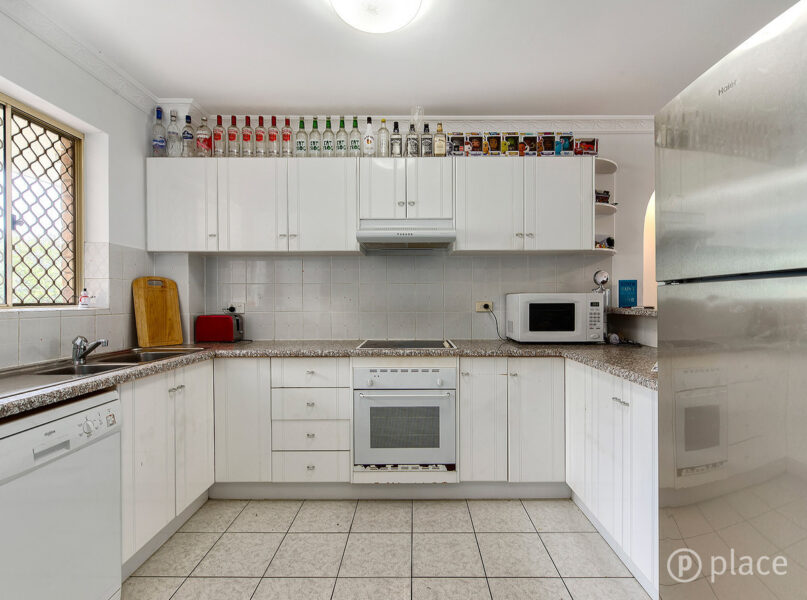 The wraparound kitchen is spacious and well-appointed, easily suiting those seeking rental or dual living arrangements. An abundance of cabinetry is topped by ample bench space, and the electric cooking along with the dishwasher offer contemporary conveniences. Tiled floors are low maintenance, and there is ample space for a study space or casual dining.