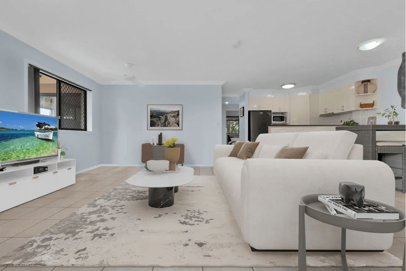 The apartment features a generous open plan living and dining area that flows out to a private balcony, creating a comfortable space to relax or entertain while enjoying the natural breezes. With a functional layout and excellent natural light, the home is perfectly suited to professionals, couples or small families looking for a low maintenance lifestyle in a premium riverside location.