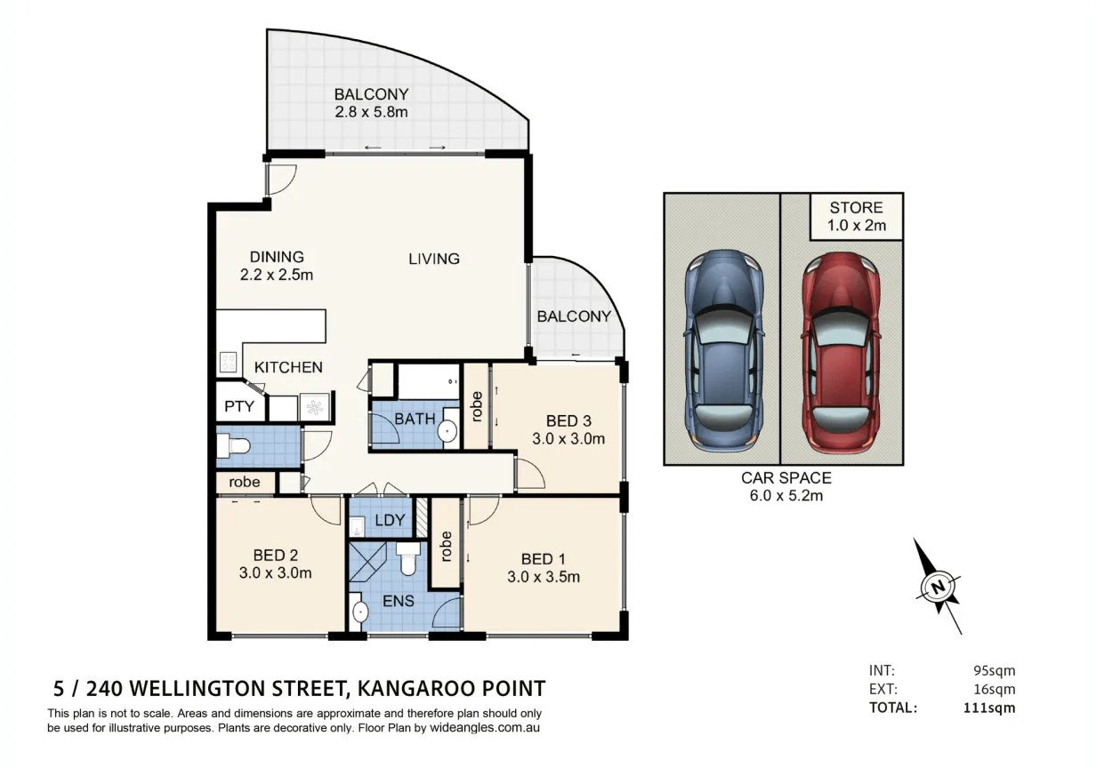 • Three bedrooms with built in wardrobes & ceiling fans, including one with its own private balcony