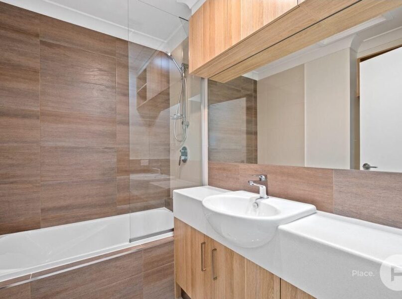 The heart of the home is the well appointed kitchen which flows seamlessly into the combined living and dining area. This open layout leads directly onto a private balcony framed by a leafy outlook, offering a peaceful space to enjoy a morning coffee or unwind at the end of the day. The modern bathrooms further elevate the home, with the main bathroom offering a shower over bath for added convenience.
