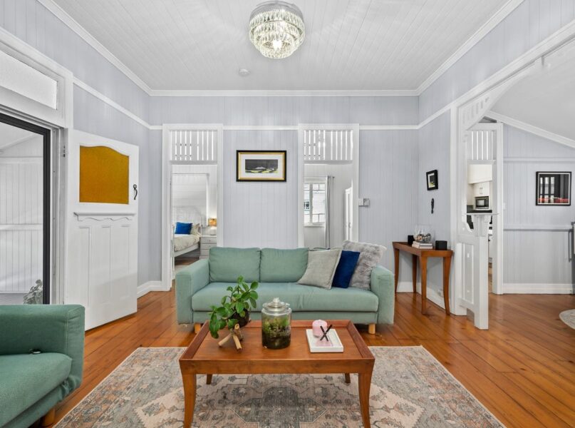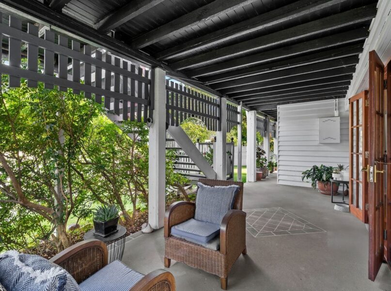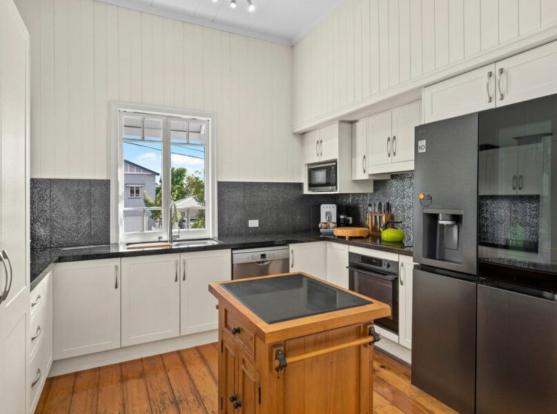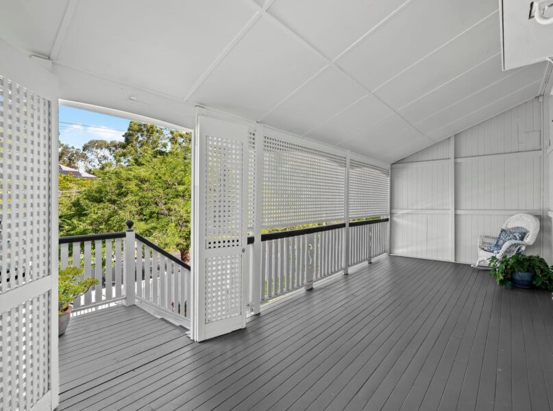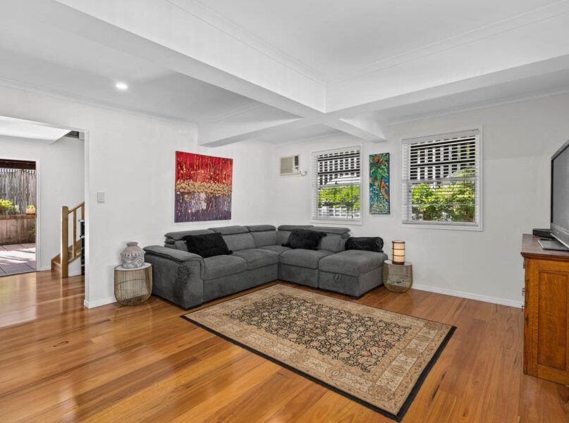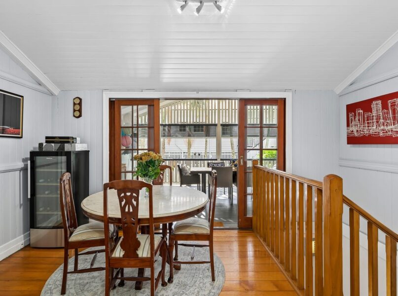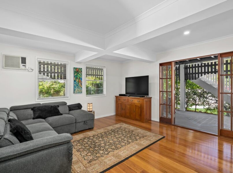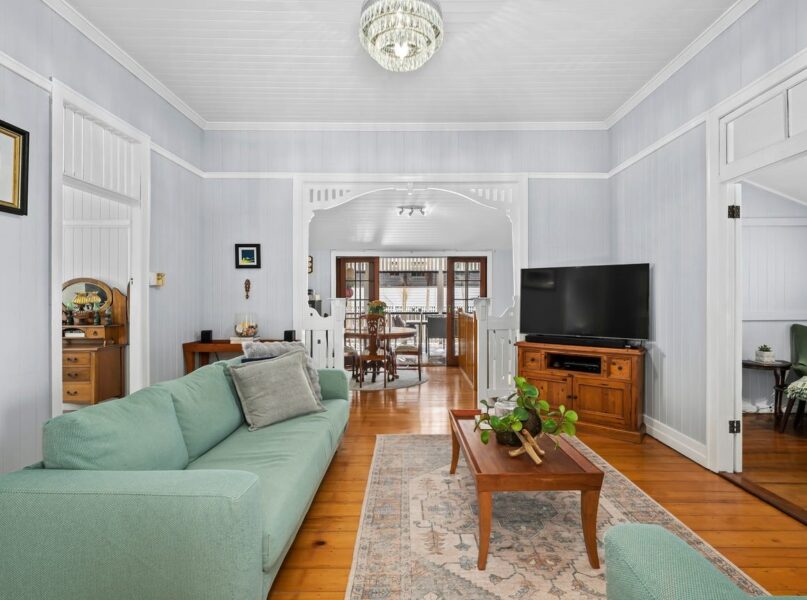 Rich in classic Queenslander charm, the home showcases high ceilings, polished timber floors, breezeways, and traditional VJ walls. Entry to the upper level is via a wide front verandah that welcomes you into light-filled living and dining areas. The well-positioned kitchen services the dining space with ease and opens through French doors onto a large, covered rear deck, perfect for entertaining.