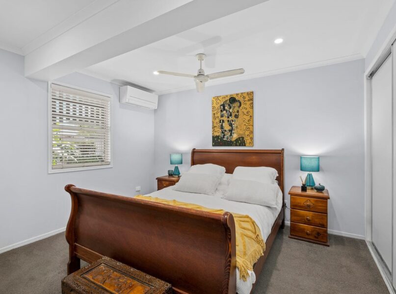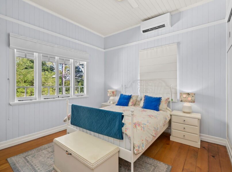 The upper level comprises two generous bedrooms, a large sunroom and a third bedroom or study. All bedrooms and living areas are fitted with split-system air conditioning and ceiling fans, while a beautifully renovated main bathroom services this level.