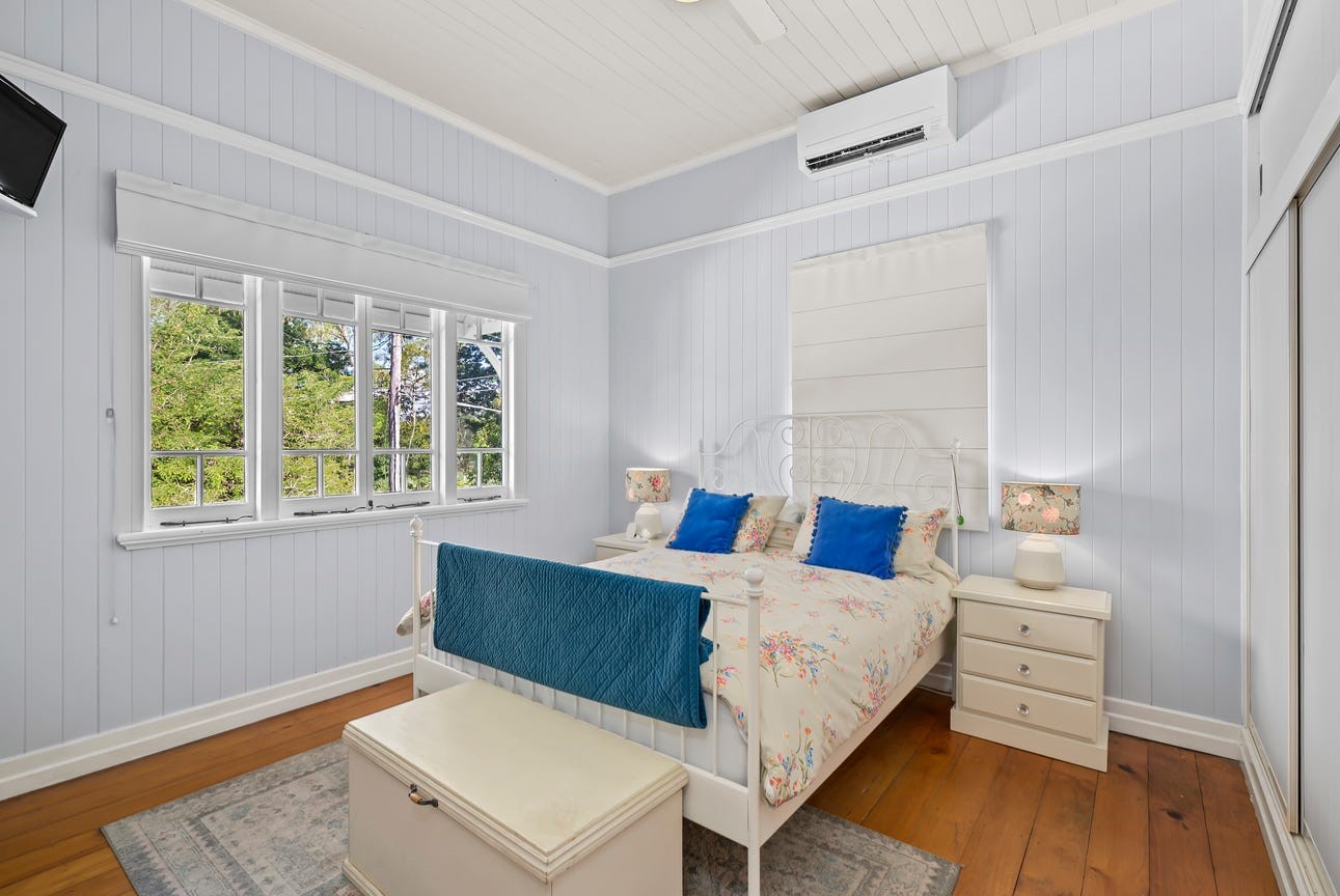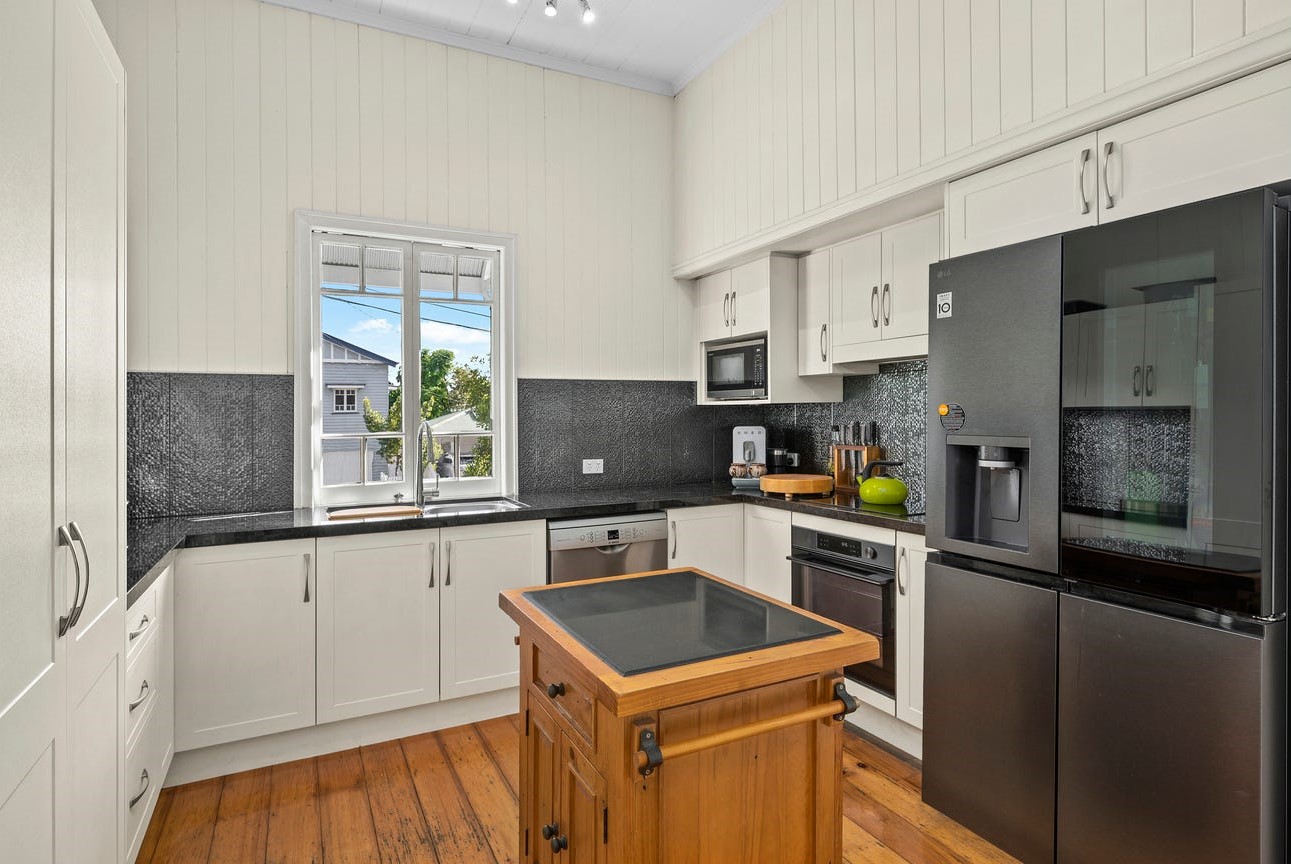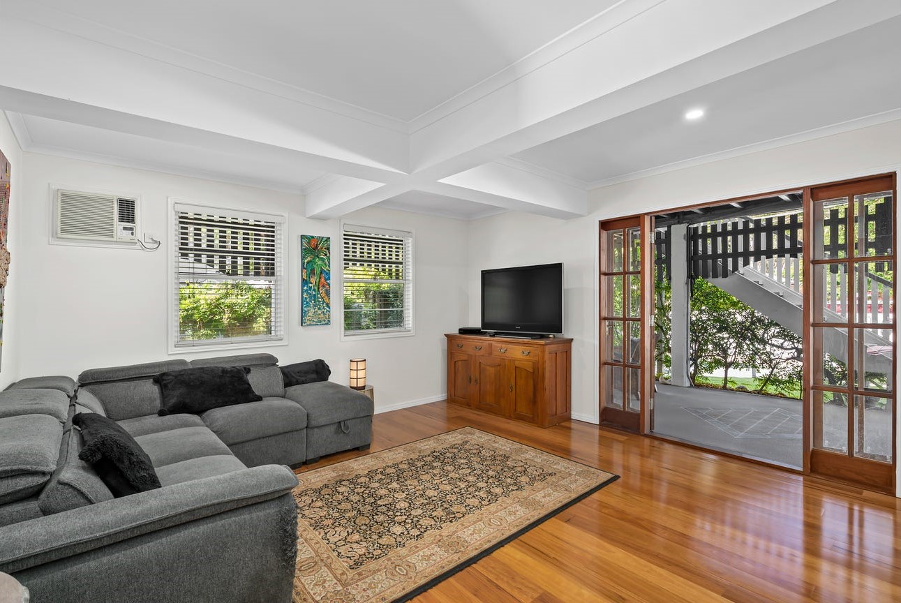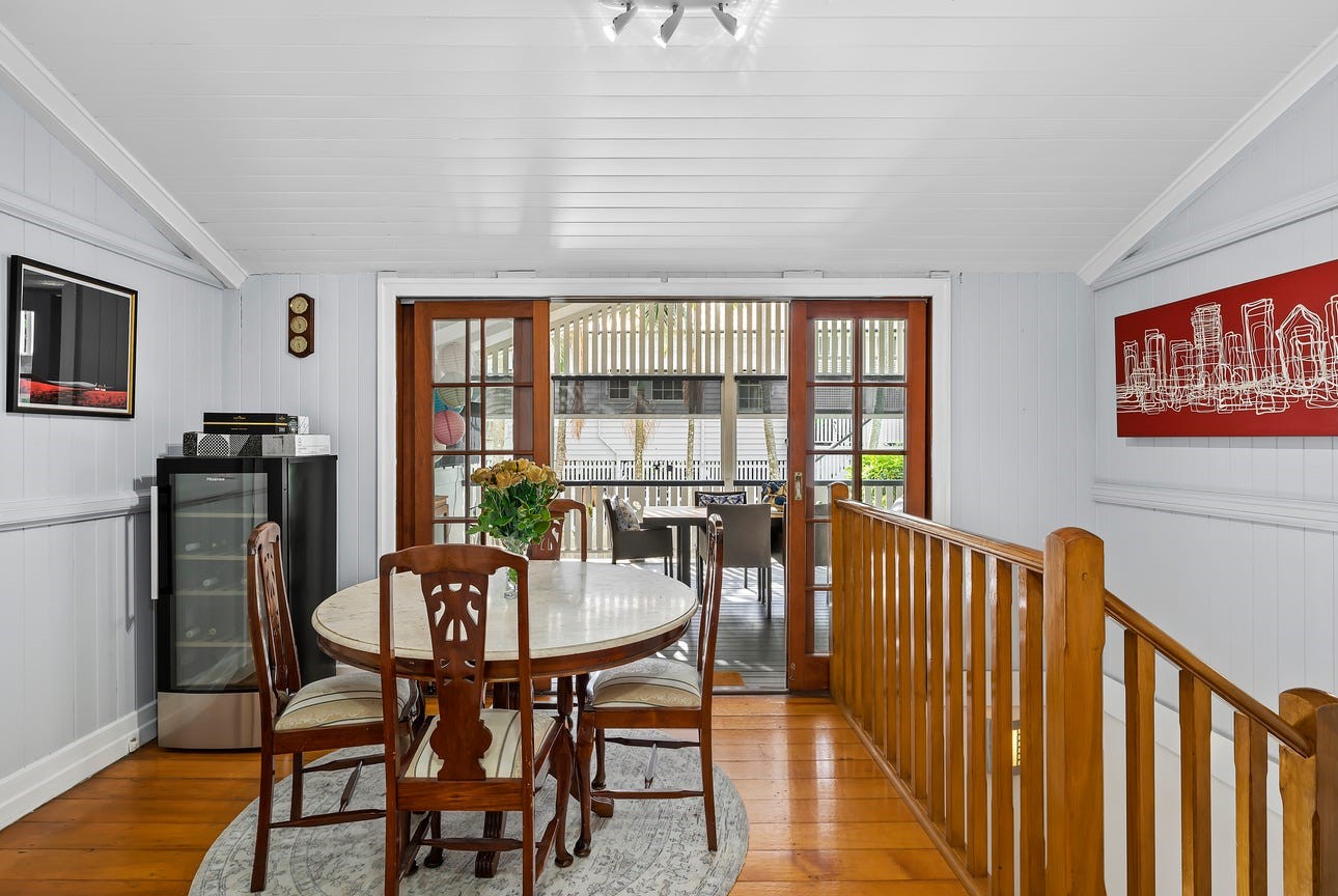 Rich in classic Queenslander charm, the home showcases high ceilings, polished timber floors, breezeways, and traditional VJ walls. Entry to the upper level is via a wide front verandah that welcomes you into light-filled living and dining areas. The well-positioned kitchen services the dining space with ease and opens through French doors onto a large, covered rear deck, perfect for entertaining.