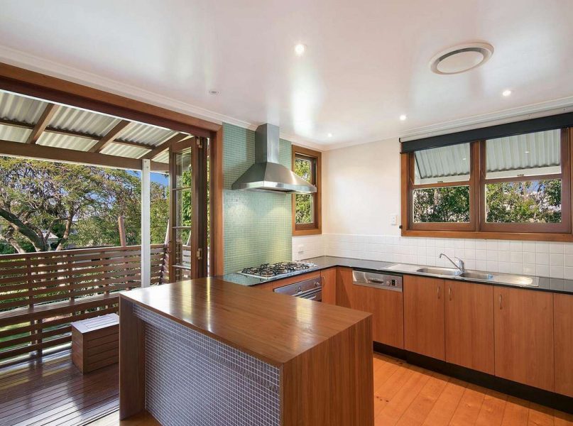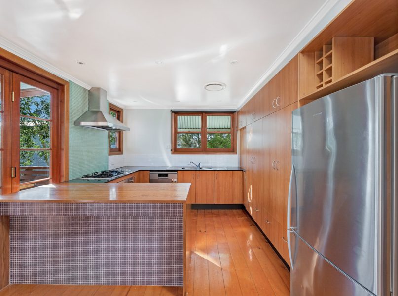 – Timber look cabinets with matching dishwasher hidden away