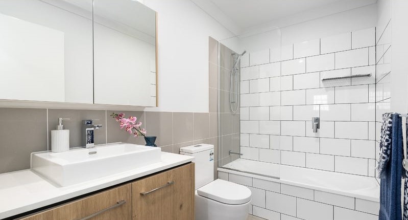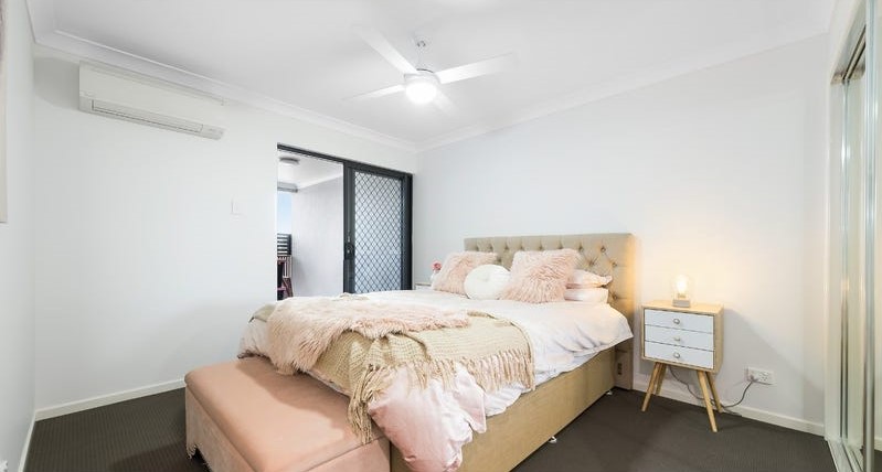– Master bedroom with built-in robe, private balcony, modern ensuite, air-conditioning and ceiling fan