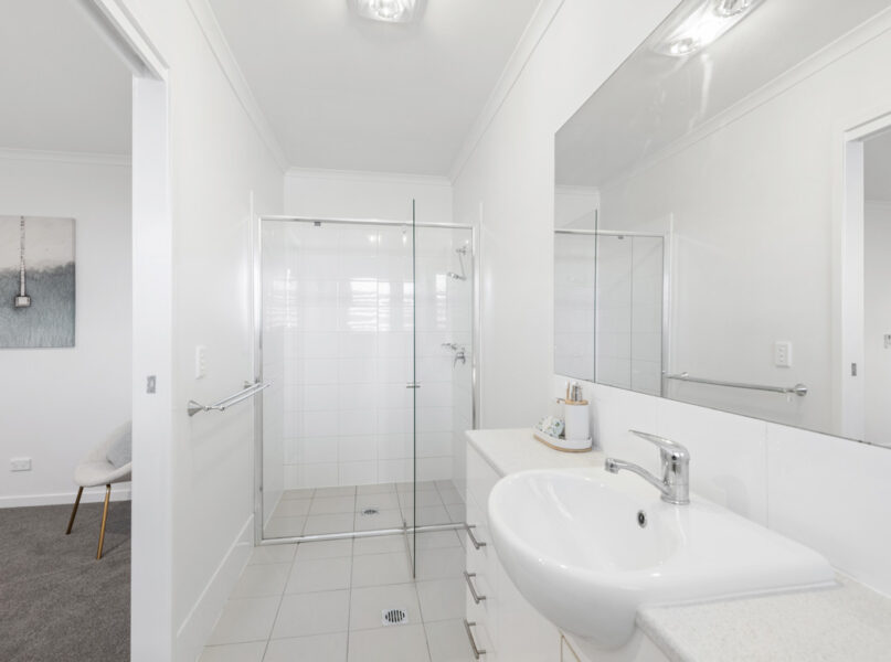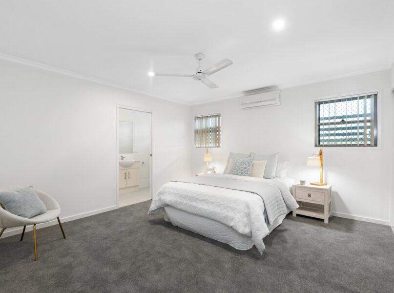 – Spacious main bedroom comes with large ensuite, vanity, large robe, air-conditioning and ceiling fan.
