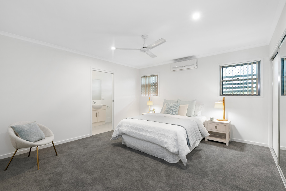 – Spacious main bedroom comes with large ensuite, vanity, large robe, air-conditioning and ceiling fan.
